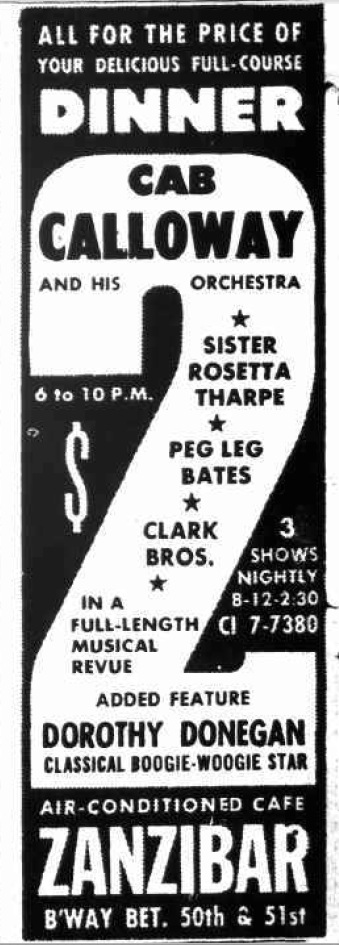Zanzibar Cafe, Broadway - Cab Calloway ad
