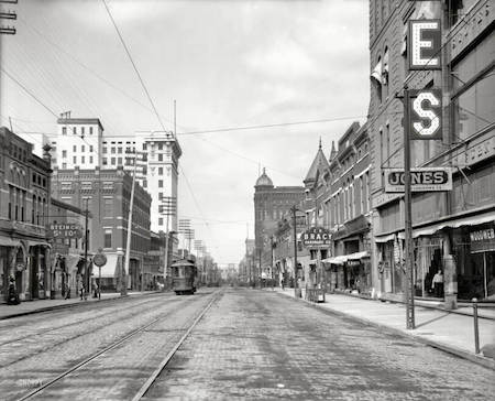 Main Street north from Sixth, Little Rock, Arkansas, circa 1910.